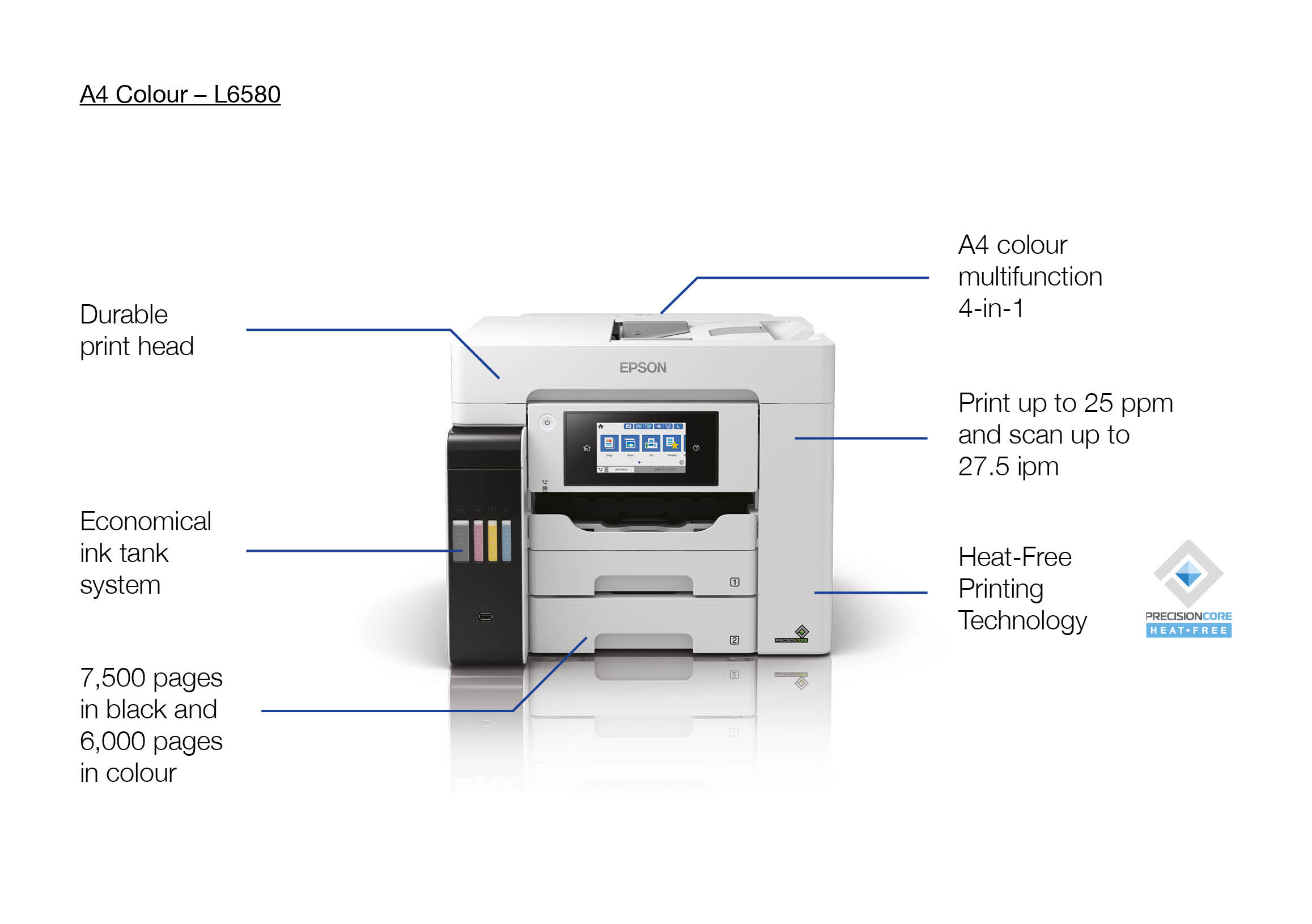Mürekkep kartuşlarını değiştirmenin maliyeti ve zorluğu olmadan binlerce yüksek kaliteli sayfa yazdırın. EcoTank L6580, Wi-Fi bağlantısından hızlı ve kolay taramaya kadar, hemen üretken olmanızı sağlayan çok sayıda özellikle birlikte gelir.