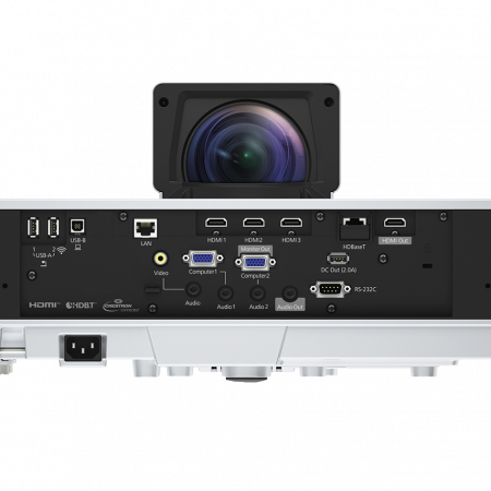 Bu şık, zarif ve parlak tabela çözümü, en dikkat gerektiren sunumları gerçekleştirmek için esnekliğin yanı sıra dar alanlarda çalışmak için çok yönlülük sunar. Duvara, tavana, zemine monte edilebilir ve hatta daha fazla gizem oluşturmak için gizlenebilir. Ultra kısa mesafe tasarımı kısa mesafeden büyük görüntüler yansıtmayı mümkün kılar. Siyah versiyonu da mevcuttur.