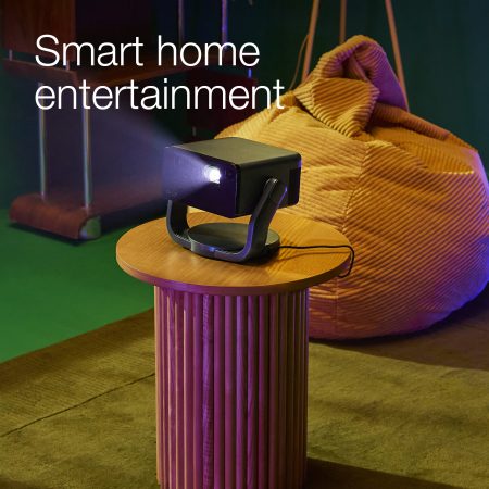 Bu kompakt projektör metalik siyah renkte sunulur ve ayarlanabilir dahili standı ile görüntüler duvara, tavana veya zemine her yönde yansıtılabilir. Basit kullanım, kurulum ve taşınabilirlik, hareket halindeyken eğlencenin keyfini çıkarabileceğiniz anlamına gelir.